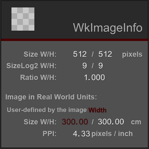 • WkImageInfo gives a summary of the image dimension and pixel density.